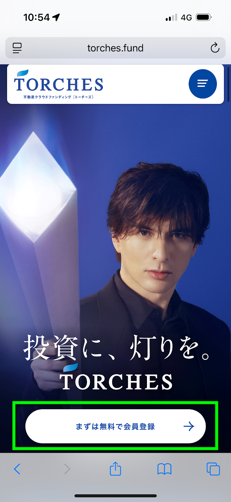 まずは、下の緑のボタンからTORCHES 公式サイトにアクセスします。