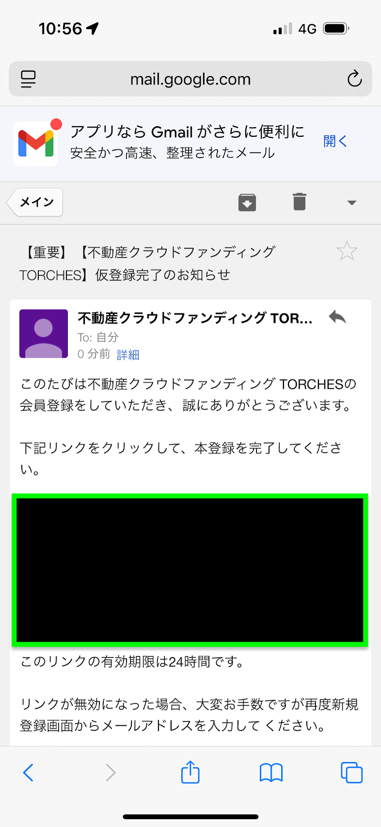 メールに記載の緑のところを押します。